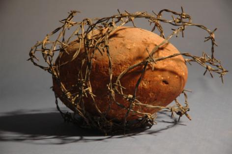 1986, Keramik mit Eisen/Stacheldraht, 24x18x17 cm